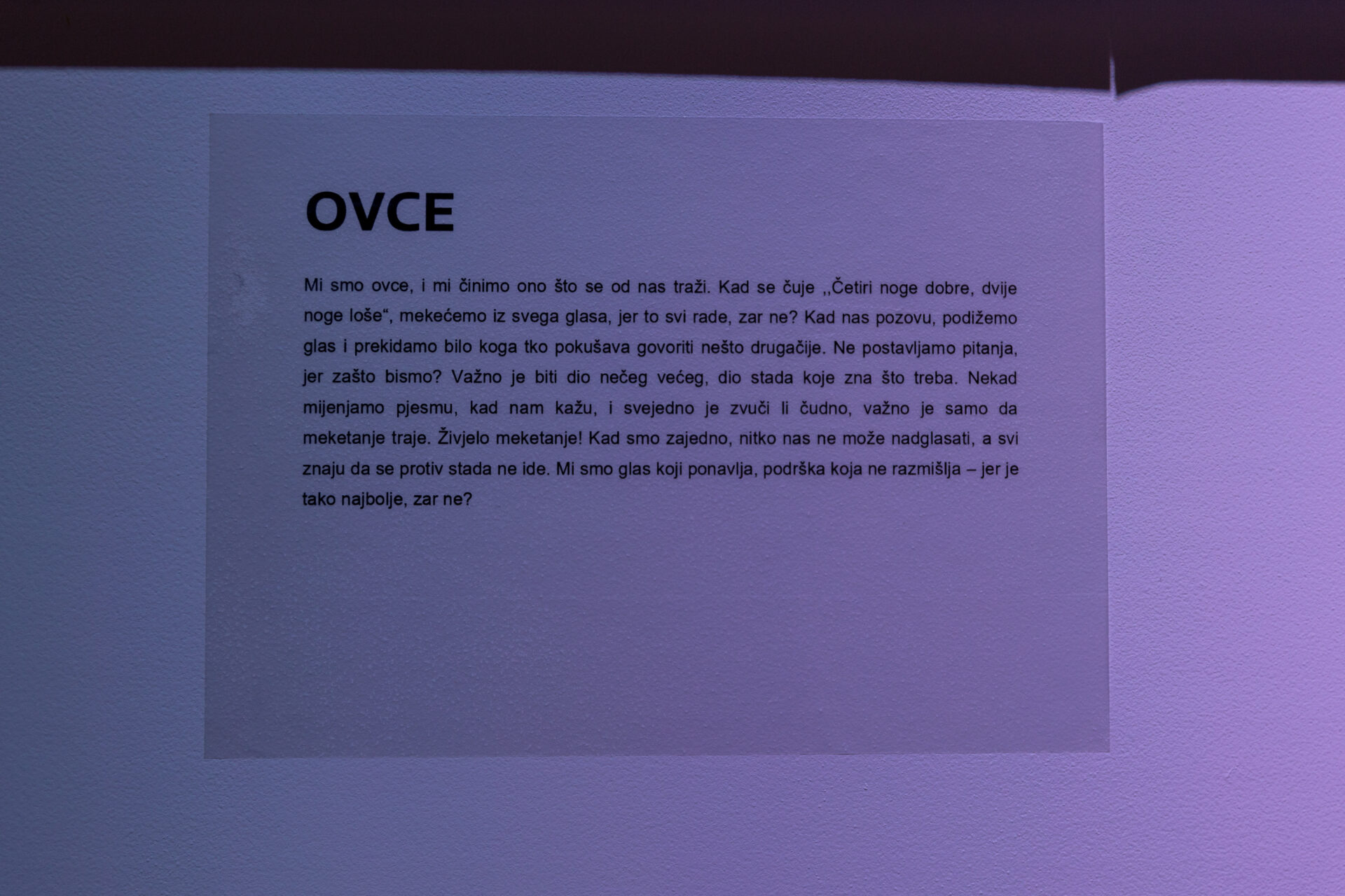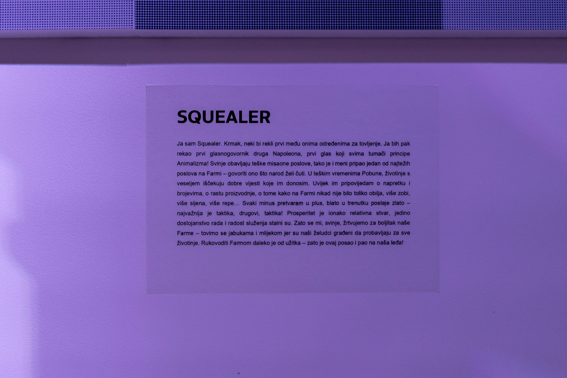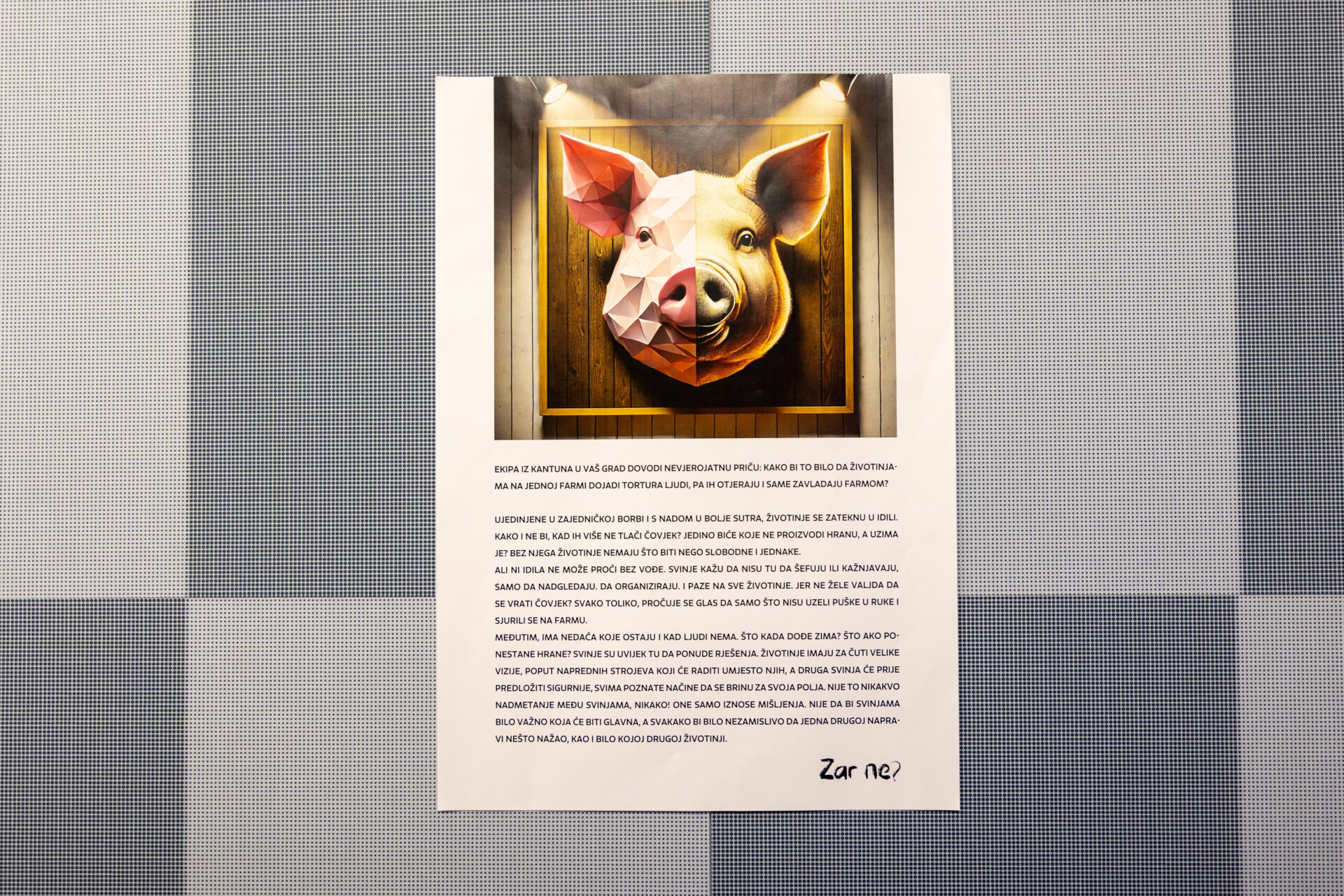 “Postavljanje izložbe, koju u Kantunu kulture svi zainteresirani posjetitelji mogu razgledati do kraja godine, bilo je prilika da upoznamo publiku sa svojim dosadašnjim radom kao i djelom “Životinjska farma” Georgea Orwella. S ciljem da posjetiteljima dočaramo radnju knjige prema kojoj stvaramo kazališnu predstavu i bolje ih upoznamo s likovima, smatrali smo ovo najboljim načinom za svoje prvo javno predstavljanje. Posjetitelji su tako imali priliku upoznati se s maskama i proučiti način na koji su izrađene. Osim što je svaka maska postavljena na ručno rađenom postolju, uz svaku od njih naveden je kreativan i duhovit opis uloge koju predstavlja. Oživljavanjem maski u odigranom prizoru iz buduće predstave, dodatno smo željeli iznenaditi prisutne, izazvati pozornost i zanimanje te se nadamo da smo u tome i uspjeli.”, kažu nam članovi Ekipe iz Kantuna prepuni dojmova i zahvalni svima koji su svojim dolaskom došli podržati njihovo prvo javno predstavljanje.